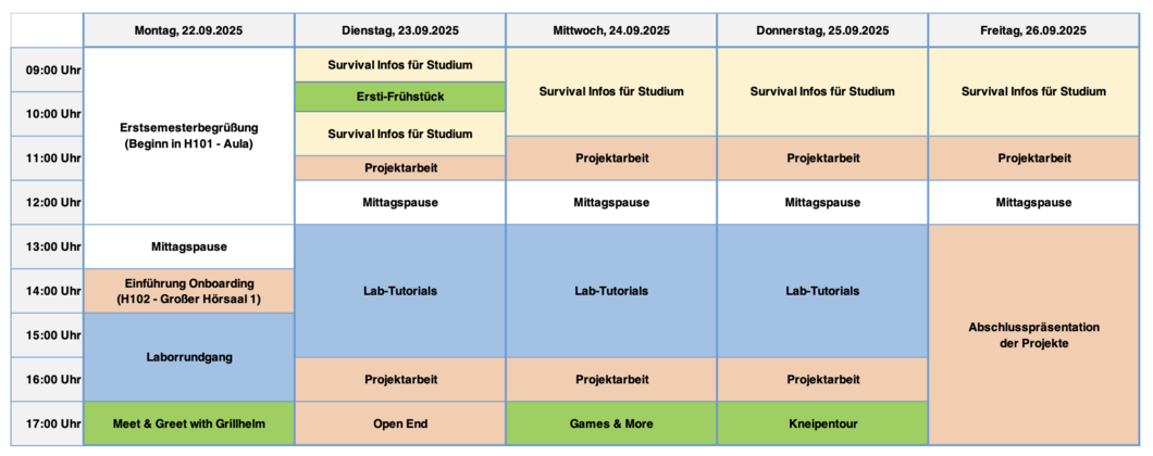 Der Ablauf der Onboarding-Woche aus dem WiSe25/26 als Beispiel:
